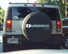 Hummer-bashing is so 2002, but still amusing. You may have already seen fuh2.com, where people post pictures of themselves flipping off Hummers. Funny, but typically ineffective sissy treehugger protesting. Why not get a little more hands-on with tagadummer.com, where they provide you with a handy template to print the “D” that will make Hummers “Dummer”. But don’t get too hands on, it can be a felony. It’s also kind of fun to peruse flamed-out discussion threads with posts like “What would Jesus Drive?. A HUMMER. This one will take you across the desert, never getting stuck, would hold many Disciples and get you anywhere you need to be when God calls” . Nice argument, Cletus. Anti Hummer images run the gamut from the morbid 12 miles per gallon, 2 soldiers per day to the humorously Freudian now everyone will know. Personally, I’d recommend getting one right now, while petrol prices are down. There seem to be a lot sitting on the lots.