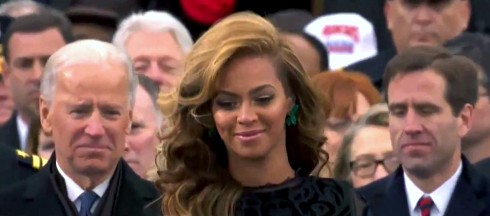 It probably says something about America that the real buzz about the presidential inauguration yesterday wasn’t driven by Obama’s inspiring vision for the next four years, but focused instead on the first inaugural use of the word “gay”, on who won the Clarkson & Beyonce smackdown, the Lupe Fiasco fiasco, and perhaps most importantly, on which politician sneaked the most peeks at Beyonce’s rear (see below). Frankly, I don’t see how their eyes were aiming so low, with President Obama’s Ceremonial Drone Flyover roaring overhead. We promise to get to the bottom of this issue below, butt first, some shopping tips and YouTubidity: