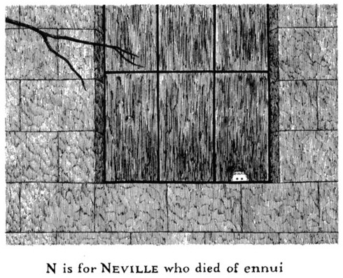 For the record, my personal favorite from the The Gashlycrumb Tinies has always been Neville: