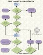 In the ongoing saga of the RIAA just not getting it, they are apparently tired of suing old ladies who don’t even have computers and dead people and are now trying to kill their oldest and most reliable channel of cheap promotion, radio. Although the recording industry historically was quite happy to pay the broadcasting industry to play music (illegally, in fact – it was called payola), they now seem to think it should be the other way around. Click on the image at left for a detailed flow chart of how the RIAA decides whom to sue.